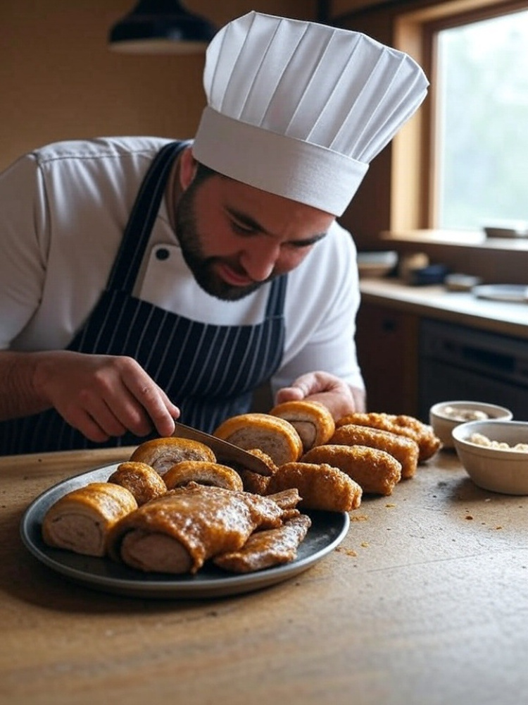 Yufkaları rulo halinde sarın ve 4 parmak kalınlığında dilimler halinde kesin. Bu şeritler, yemeğin temelini oluşturur.